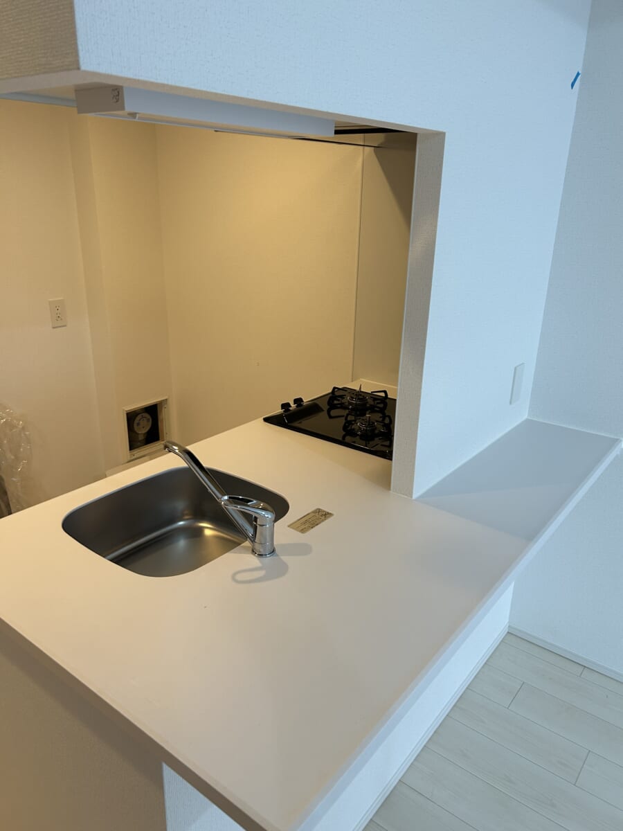 シンクや作業スペースはコンパクトながらも使いやすく、日々の料理をスムーズにこなせる実用性が魅力です。